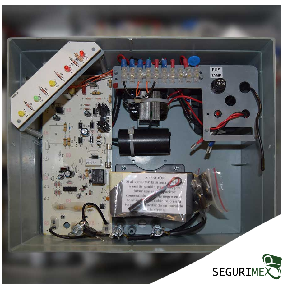 - Salida auxiliar (1.5 amp 12 V) para alimentación de sirenas, interrupciones, sensores, luces estroboscópicas, etc.